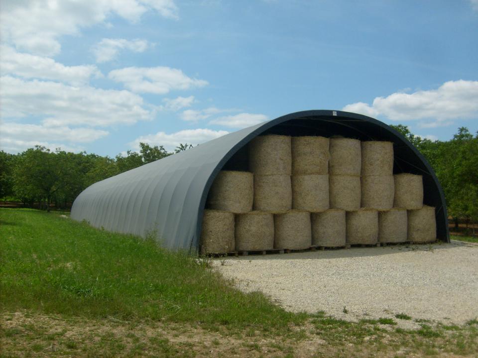 Az alagút hatásának jóvoltából a takarmányt száraz és jól szellőző körülmények között tárolhatjuk. Azok a gazdálkodók, akik a múltban egyszerű, szélnek kitett takaróponyvát használtak, most értékelik a tárolósátraink nyújtotta munkakényelmet és gördülékenységet!