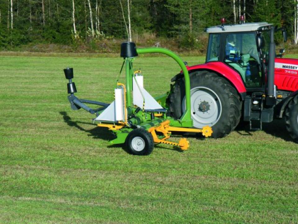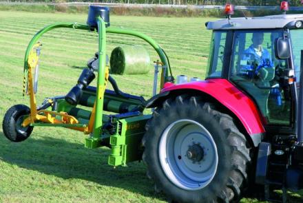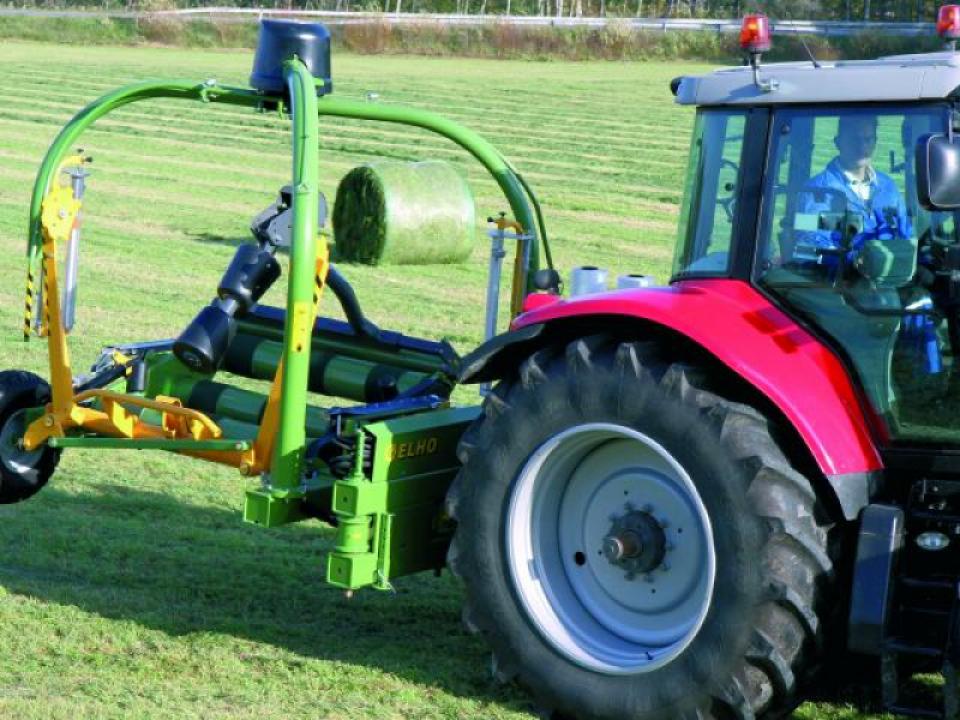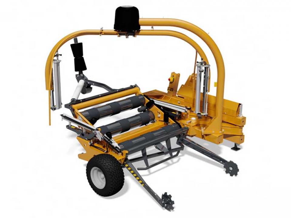 A robosztus emelőkarok központi helyzetbe hozzák a bálát, mielőtt az asztalra helyezik. A bálák könnyebb összegyűjtéséhez, a gép opciósan bálafordítóval egészíthető ki. A fóliázóasztal 3 db nagyméretű görgője biztosítja minden típusú bála biztonságos csomagolását. A bálát oldalirányban 4 db görgő támasztja meg a csomagolási folyamat során. A gép 2 darab alumínium előfeszítővel és fóliaszakadás érzékelővel szerelt, amelyek jelzik és kiegyenlítik a fóliázást, ha az egyik fólia elszakad vagy elfogy.