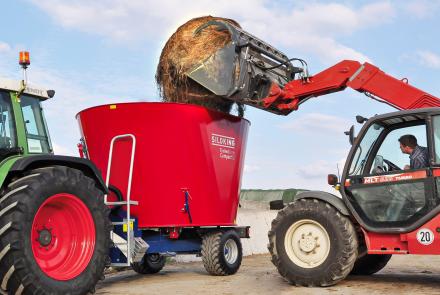 Köszönhetően a kúpgeometriának és az erőteljes meghajtásnak, a gép nem csak hagyományos keverésre használható, hanem kerek bálák szétbontására és hosszú szálú takarmány aprítására is.