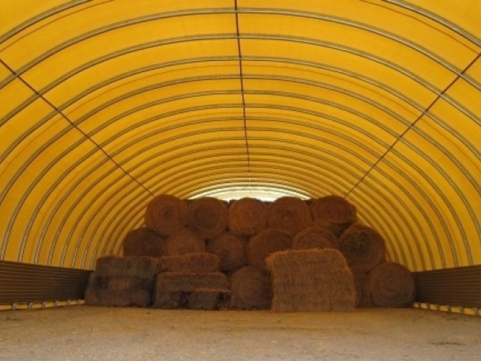 Azok a gazdálkodók, akik a múltban egyszerű, szélnek kitett takaróponyvát használtak, most értékelik a tárolósátraink nyújtotta munkakényelmet.