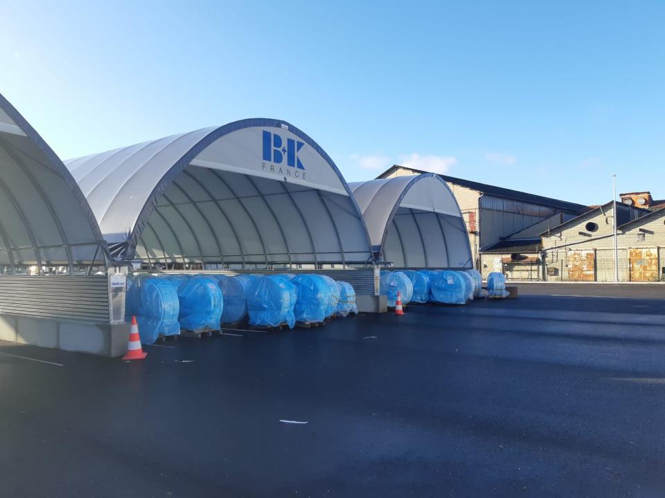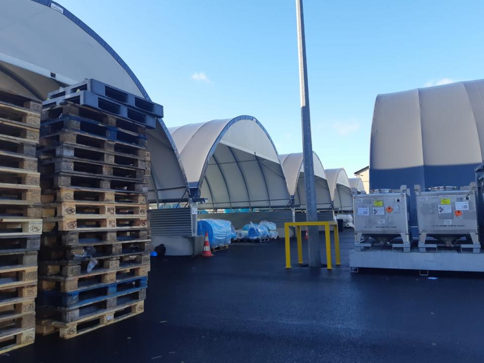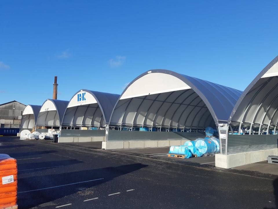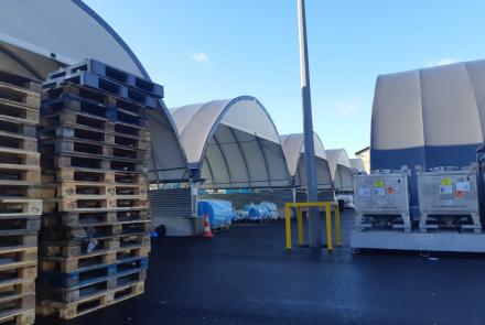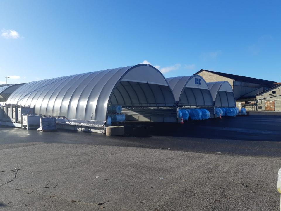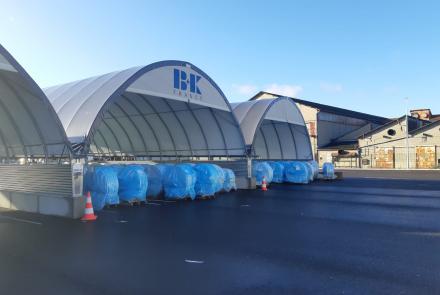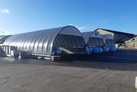 A képeken Gravetti-blokkra szerelt, 10 méter széles tárolósátrak láthatók. A tárolórendszer statikai tervezésénél mind a hóteher, mind a szélteher kiemelt figyelmet kapott, a Richel ereszcsatorna-rendszerrel a csapadékvíz elvezetése is megoldott.