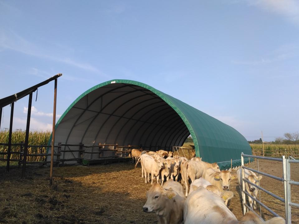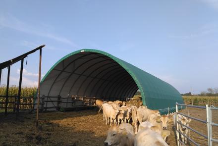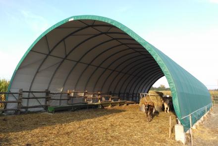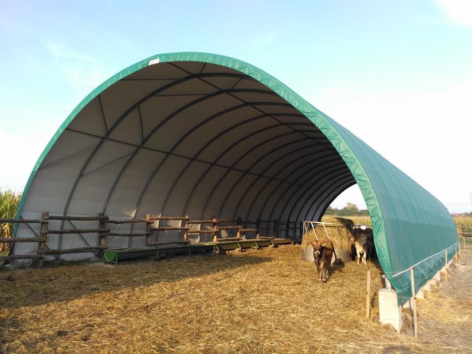 A ponyvacsarnok készülhet szigetelt verzióban, zárt oromzatokkal, vagy szigetelés nélkül, nyitott végekkel is. Kiválóan alkalmas húsmarhának, juh-kecske állomány részére.